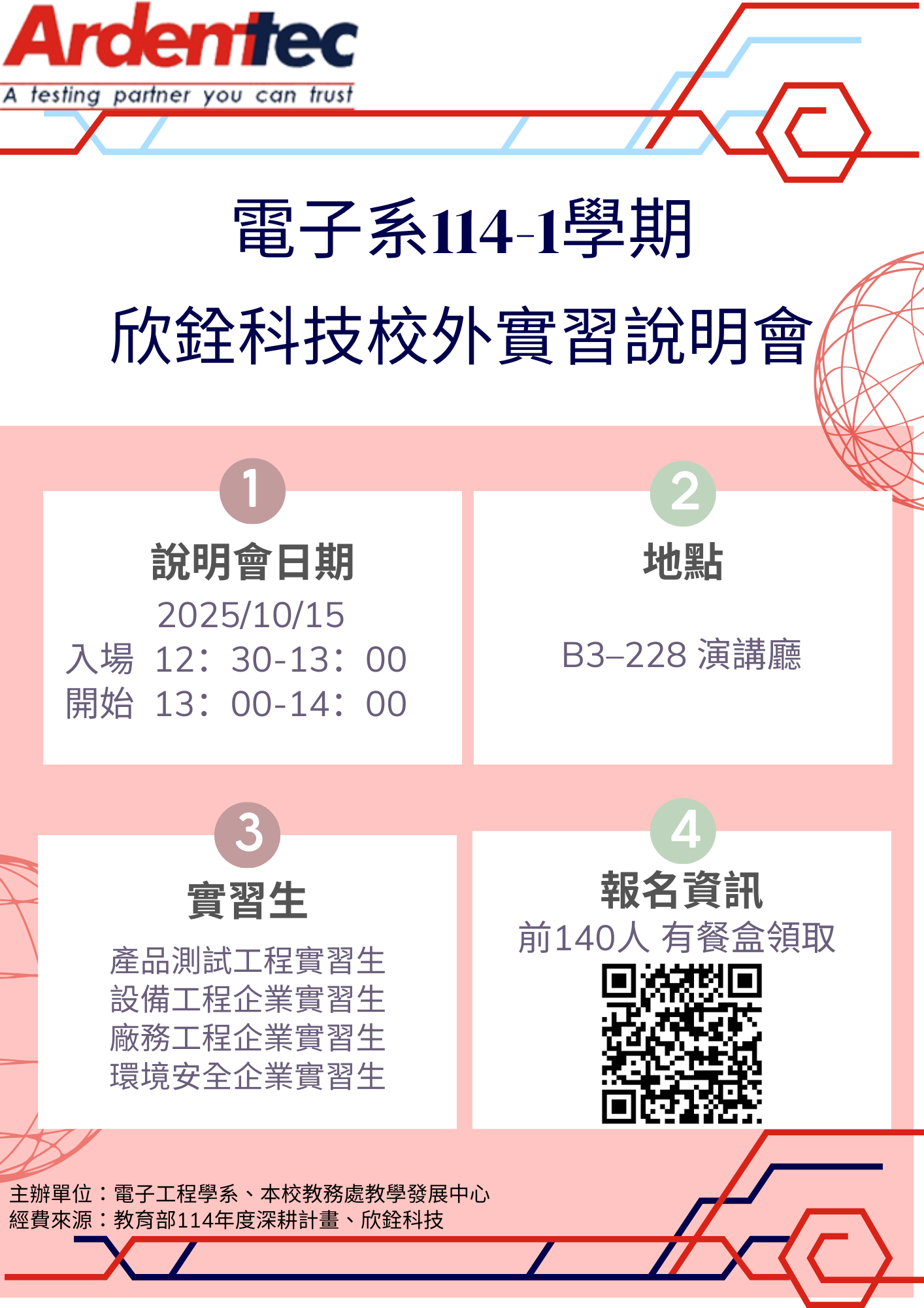欣銓科技(114-2學期)校外實習說明會(10/15舉行)/主辦:電子系