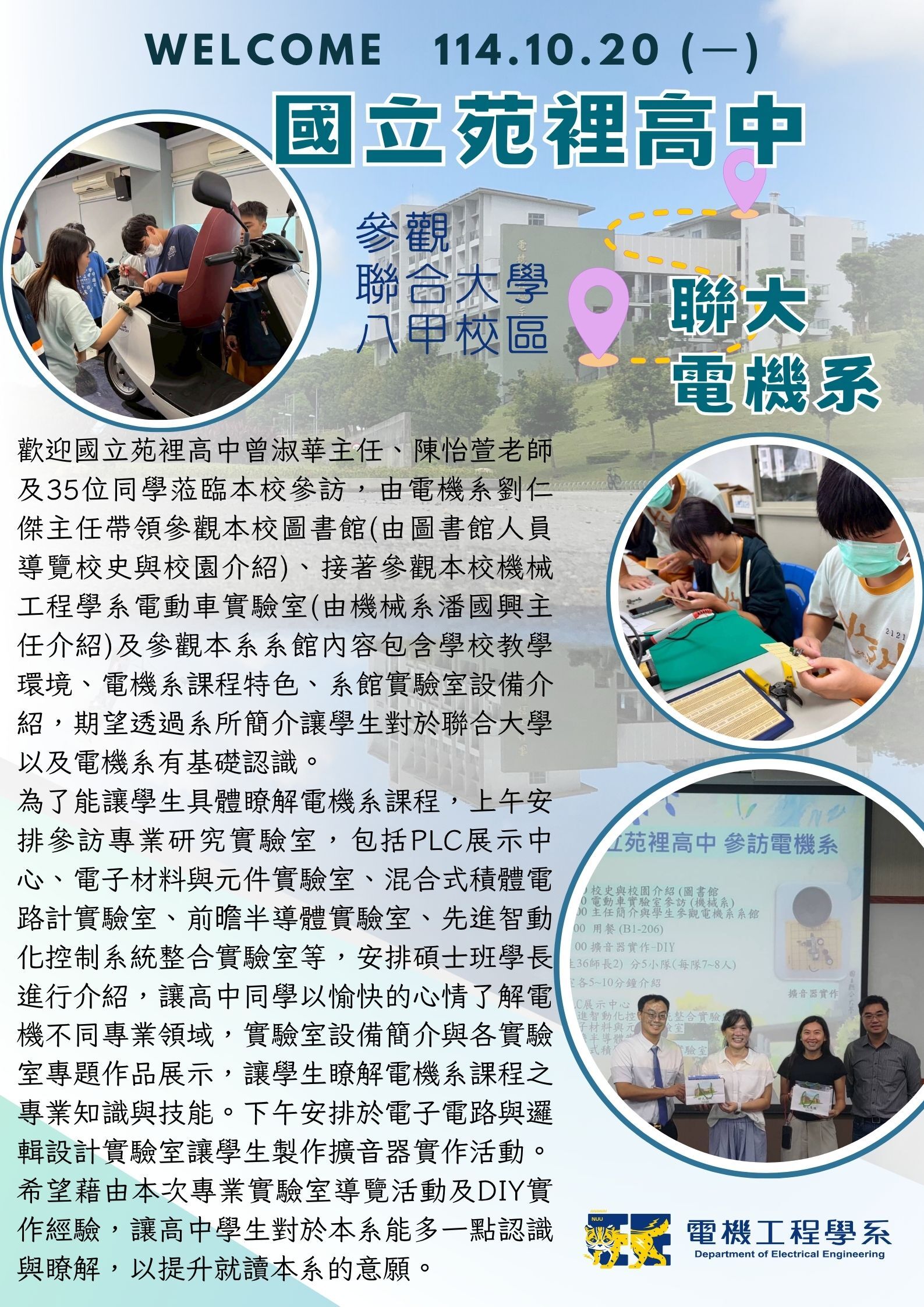 114年聯大入校招生活動-國立苑裡高中參訪本系(114.10.20)