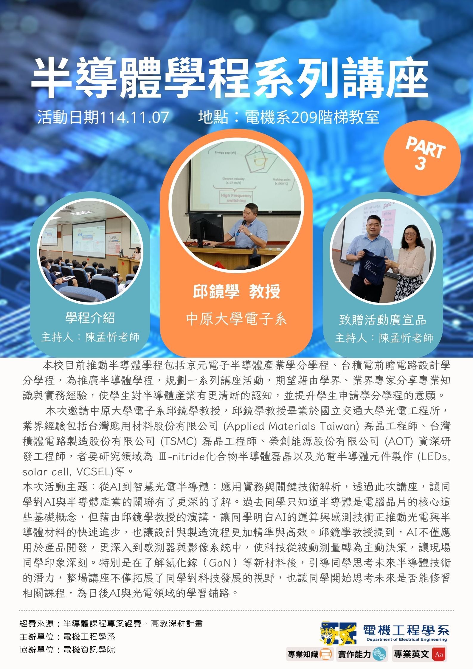 半導體學程講座系列_主題:從AI到智慧光電半導體:應用實務與關鍵技術解析。(114.11.07)