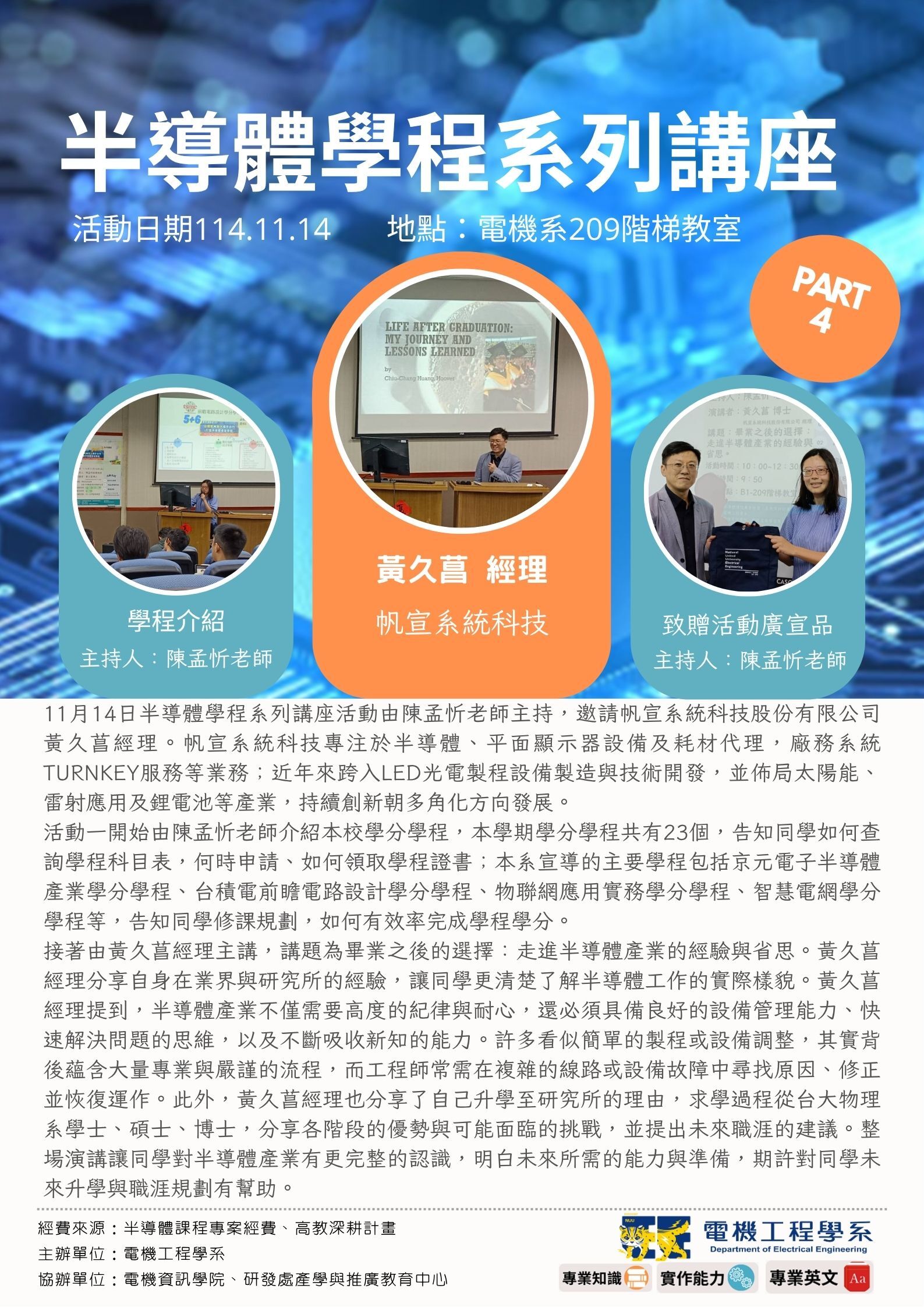 半導體學程講座系列_主題:畢業之後的選擇:走進半導體產業的經驗與省思。(114.11.14)