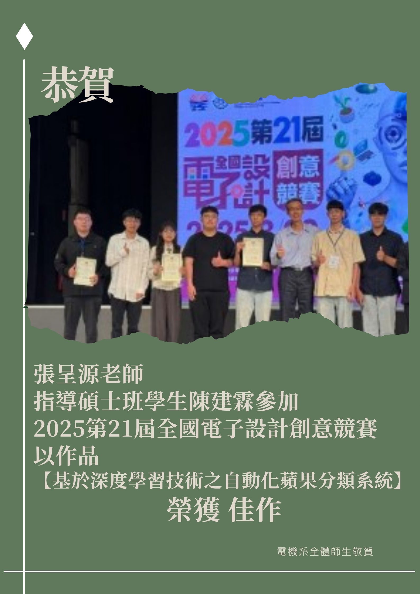 賀~張呈源老師指導碩士生陳建霖參加2025全國電子設計創意競賽榮獲佳作(114.3月)(jpg)
